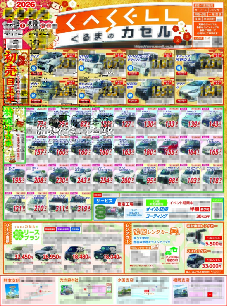 カセルでは1月3日(土)~12日(月・祝)に新春🎍初売🚗を開催いたします!